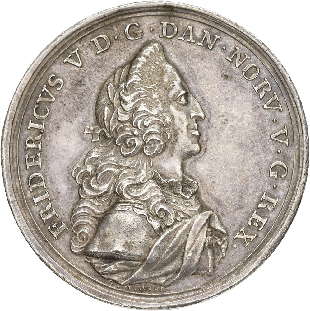 Kongehusets jubileum 1749. Wahl. Sølv 40,5 mm; 30,28 g
