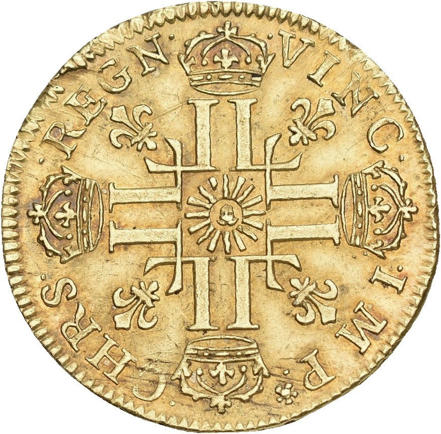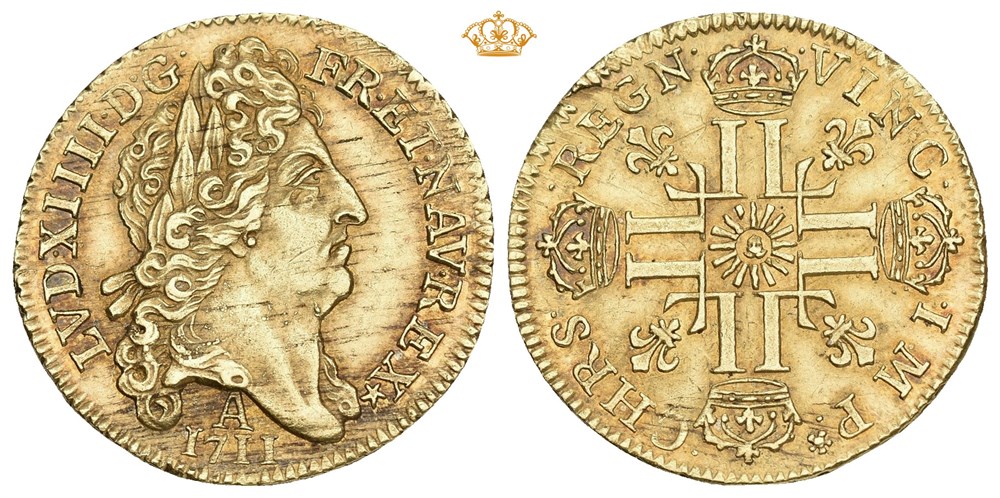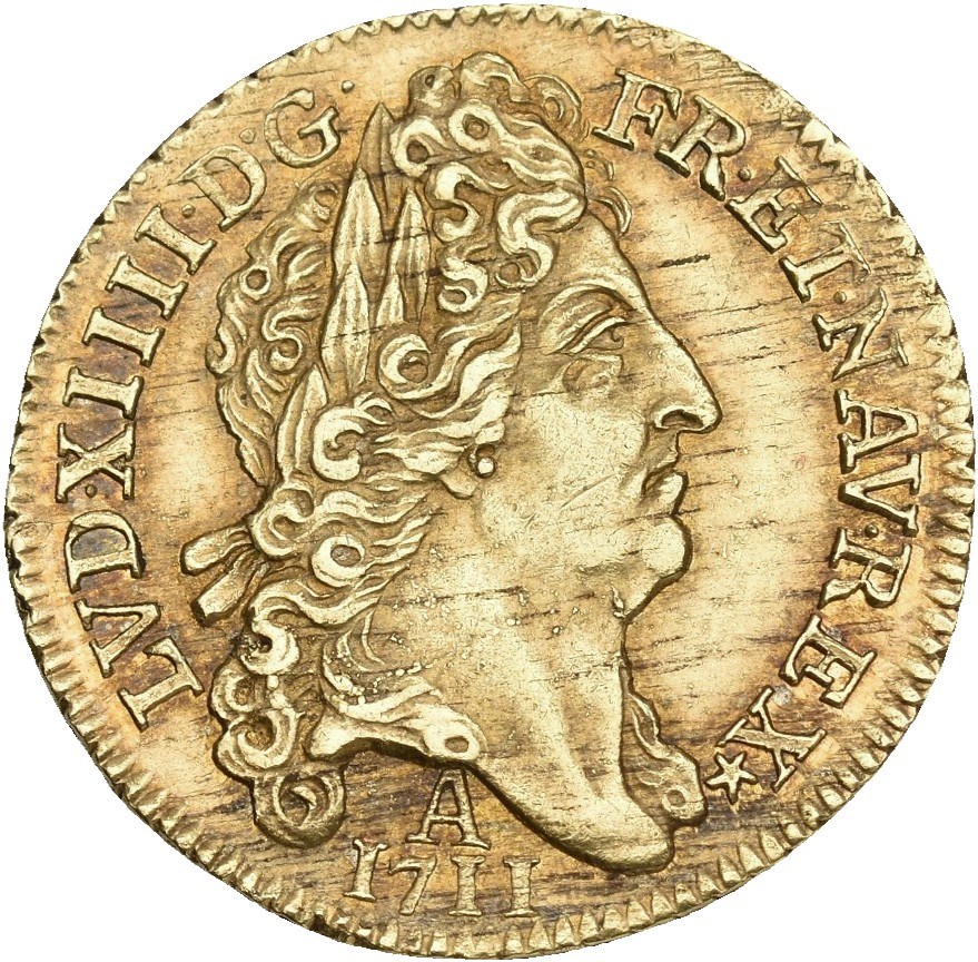 Louis d'or au soleil 1711 A. Paris mint. Fine gold toning