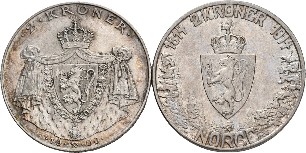 Lot 2 stk. 2 kroner 1906 og 1914, jubileum