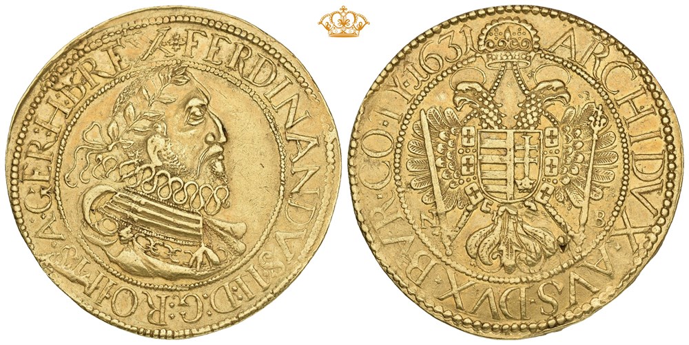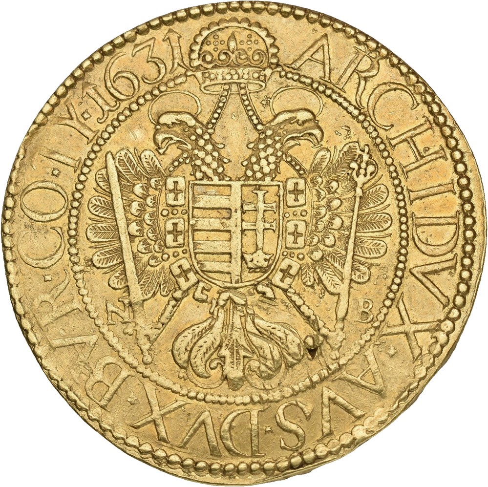 10 ducats 1631 NB (34.56 g). Nagybanya mint. Well struck and well preserved for this extremely rare type