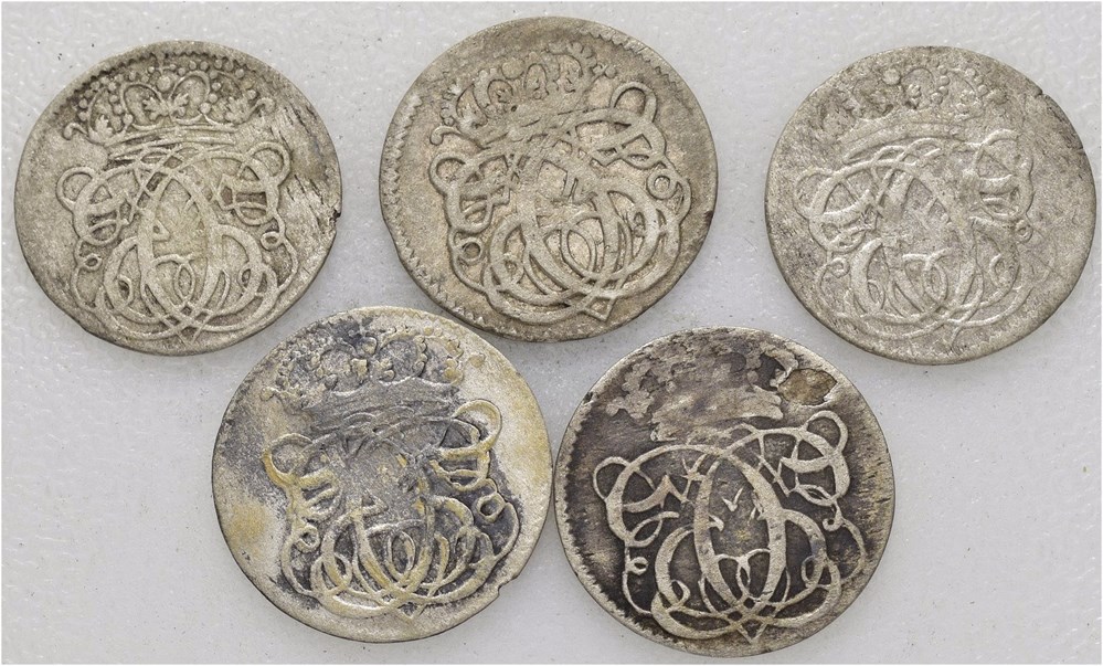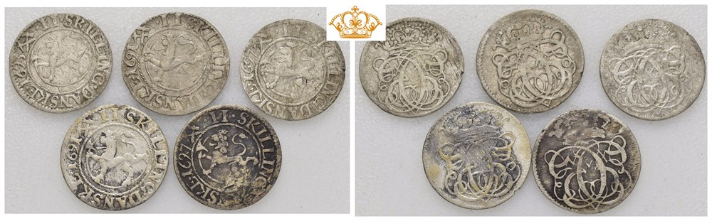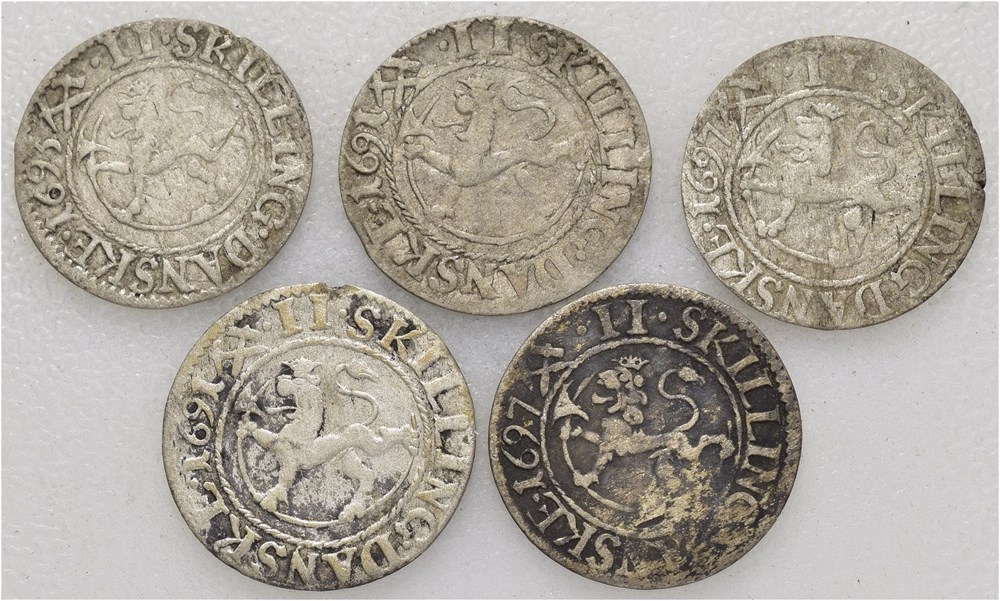 Lot 5 stk. 2 skilling 1691 (2), 1693 og 1697 (2)