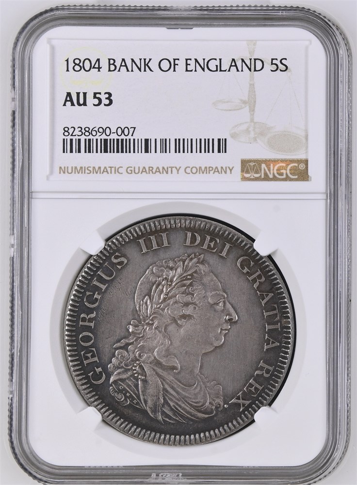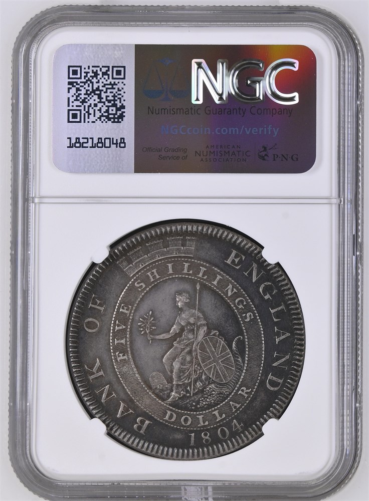 Bank of England Dollar 1804. Soho mint. Leaf to the upright of E, C.H.K. Graded AU53 by the NGC