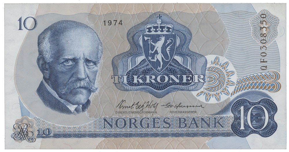 10 kroner 1974. QF0308350. Erstatningsseddel