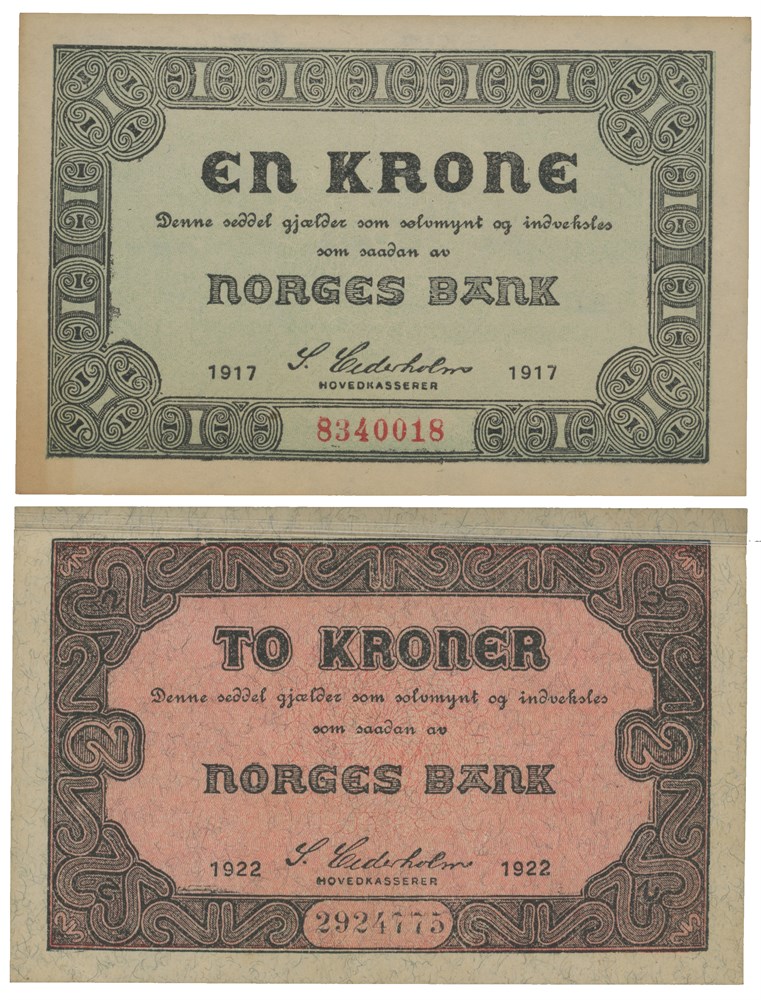 - Lott 2 stk. 1 krone 1917 og 2 kroner 1922. (14691854)