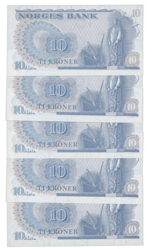 - Lott 9 stk. 10 kroner 1977 med samme serienummer. (14692072)