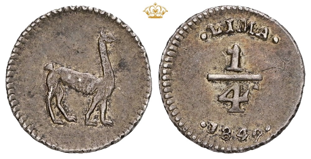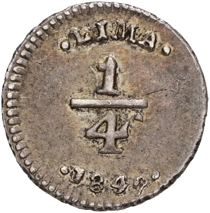 1/4 Real 1849 (0.87 g). Lima mint