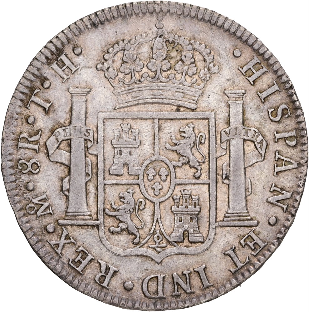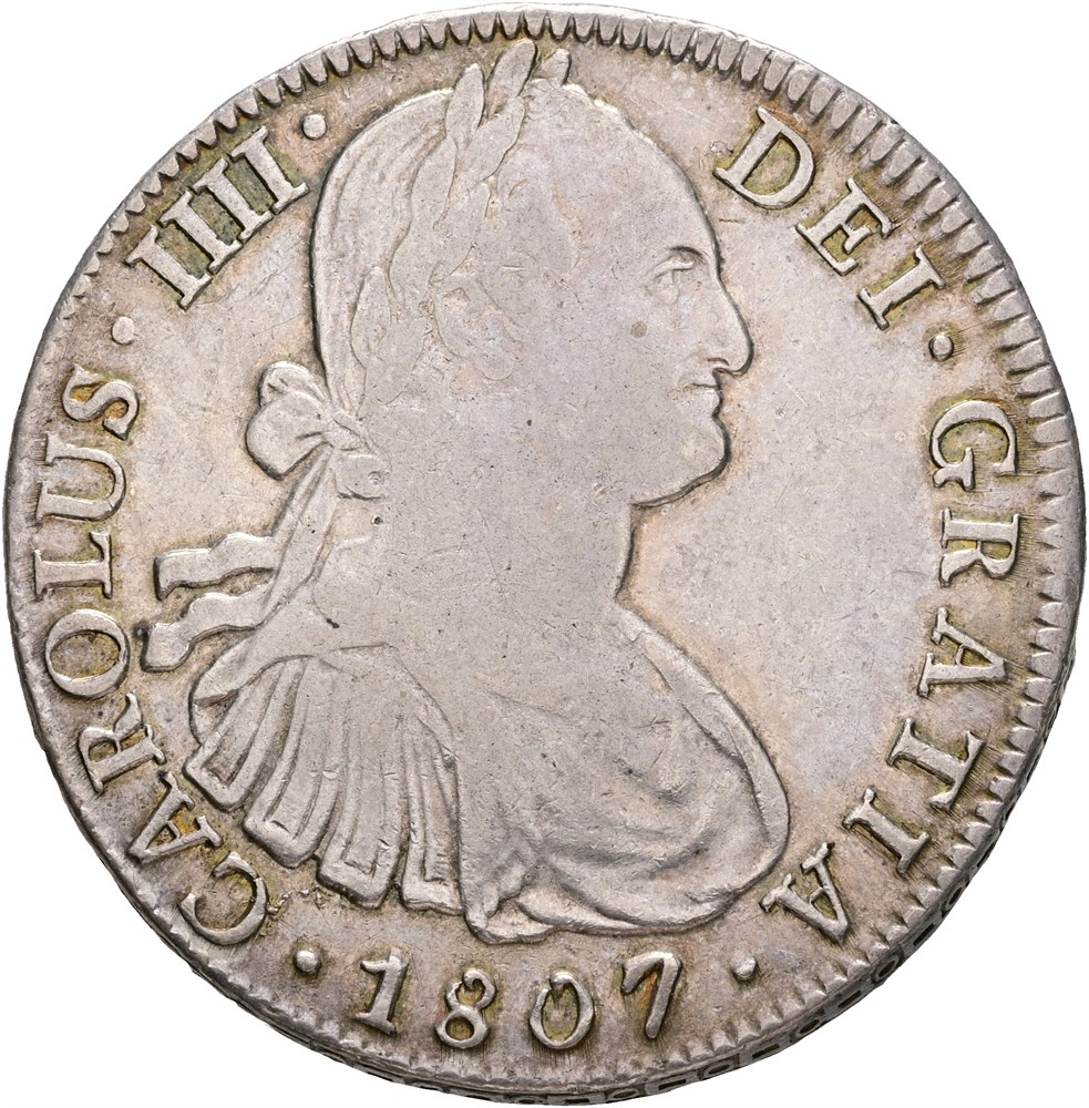 8 reales 1807 Mo TH (26.90). Mexico City mint. Lightly cleaned
