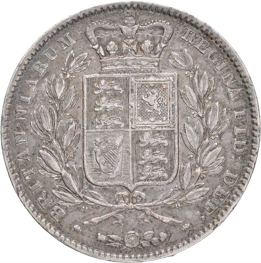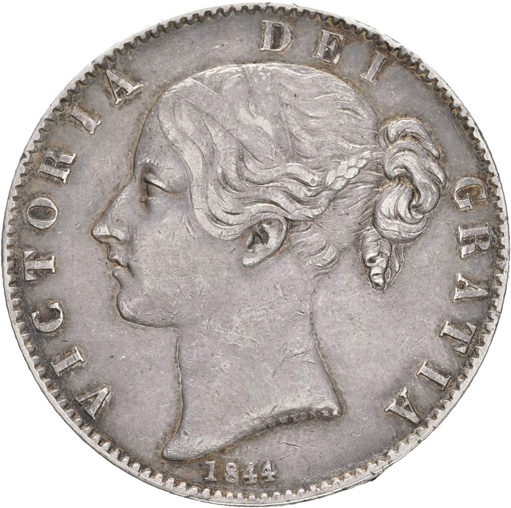 Crown 1844. London mint. VIII tar stops edge. Lightly cleaned, toned