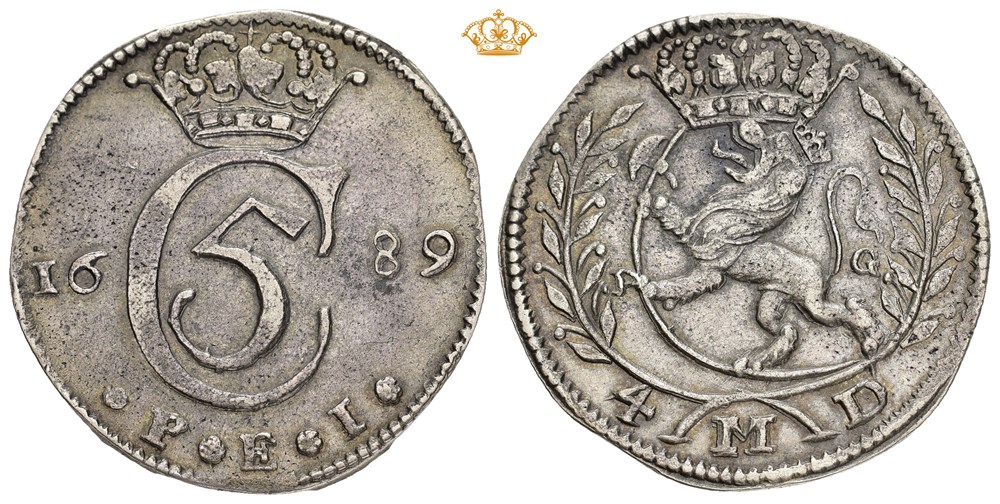 4 mark 1689. S.10 var. (19 mm krone)