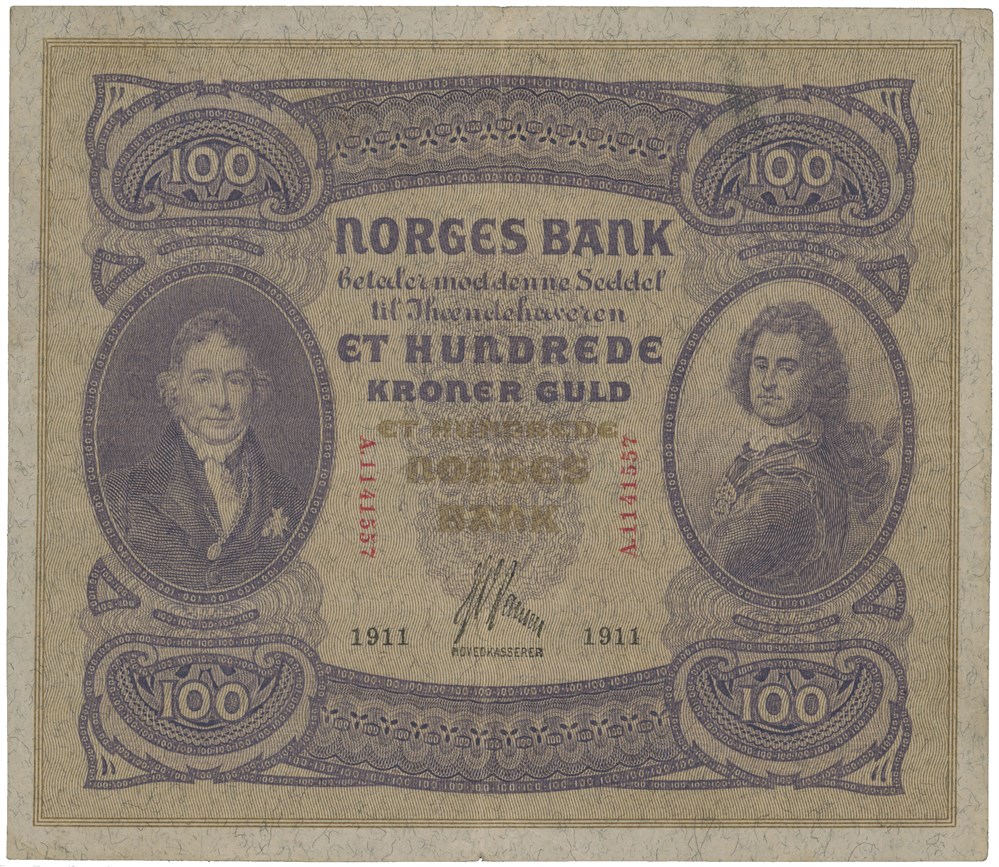100 kroner 1911. A.1141557. Sjelden/rare.