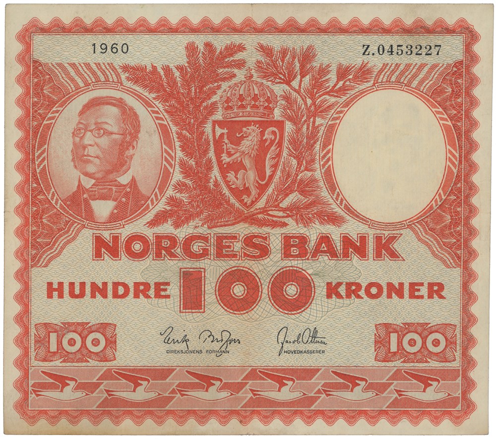 100 kroner 1960. Z.0453227. Erstatningsseddel.
