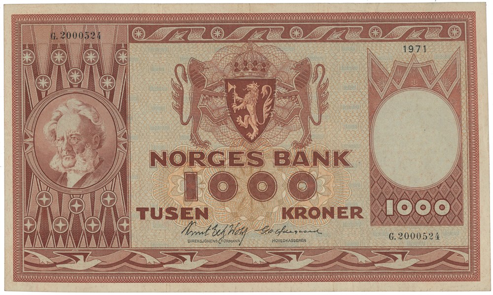 1000 kroner 1971. G.2000524. Erstatningsseddel.