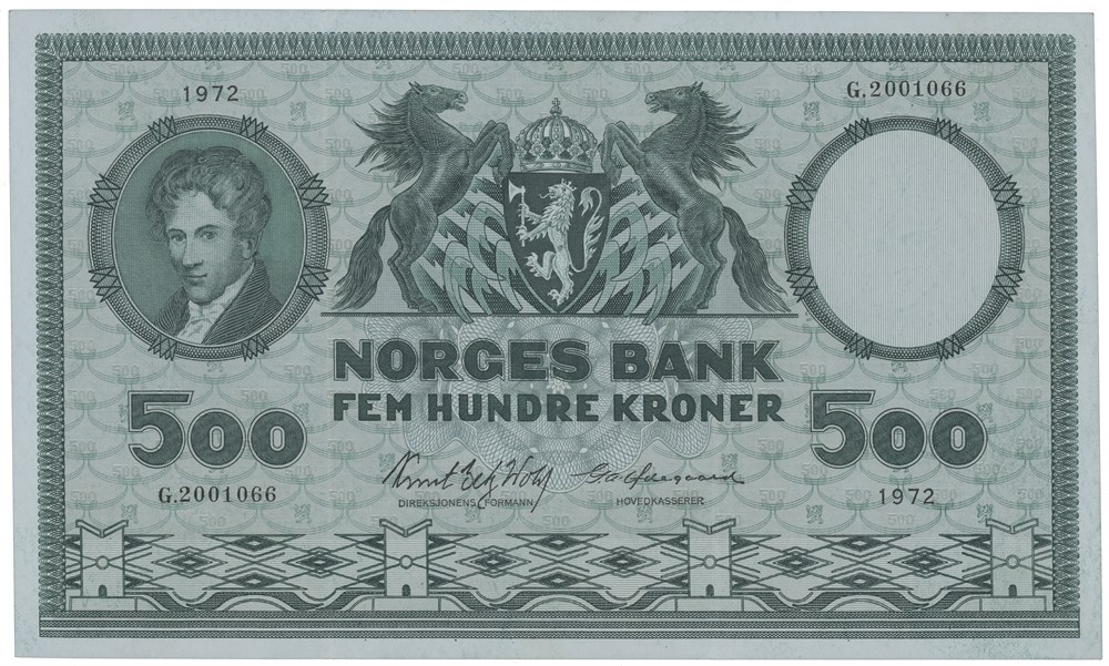 500 kroner 1972. G.2001066. Erstatningsseddel.