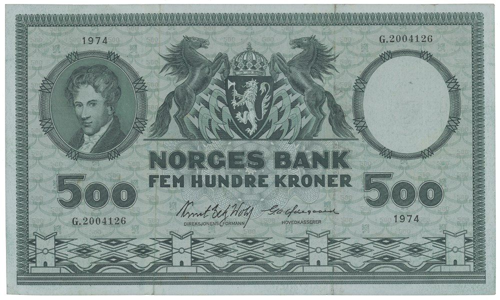 500 kroner 1974. G.2004126. Erstatningsseddel.