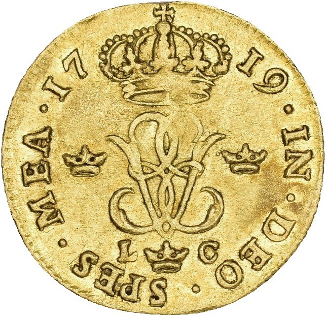 Dukat 1719 (3.45 g). Stockholm. Lite filmerke på kanten / minor edge filing