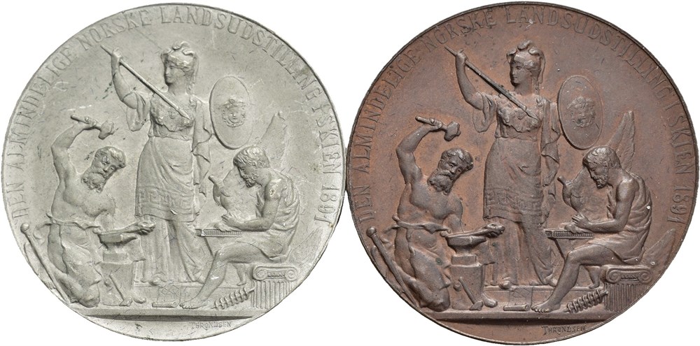 - Den Almindelige Norske Landsutstilling i Skien 1891. Lot 2 Erindringsmedaljer (14804550)