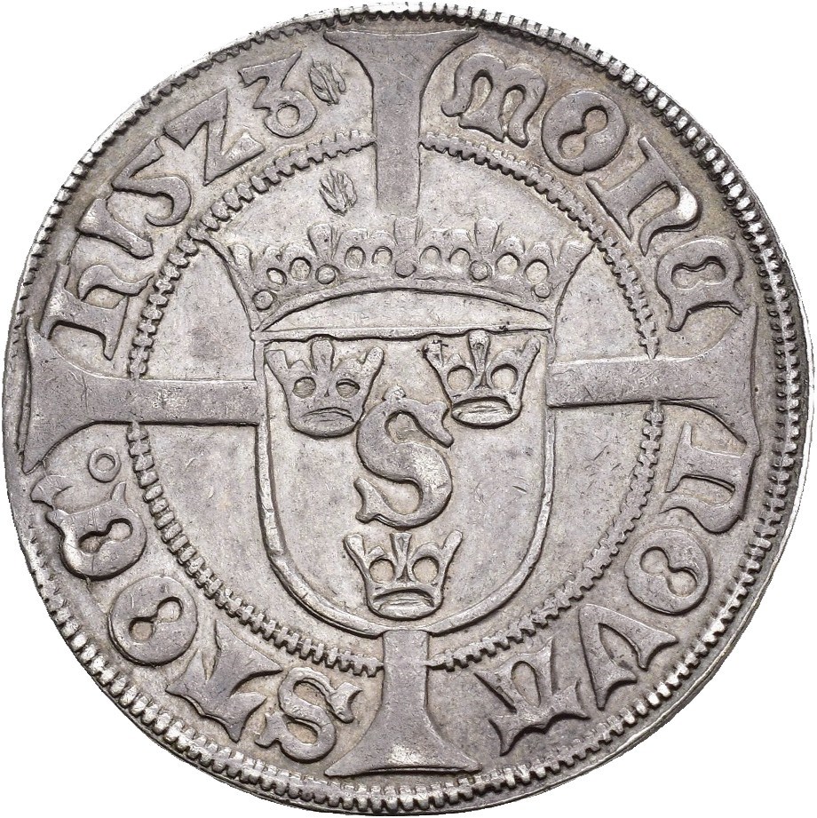 1/2 gyllen 1523 (12.88 g). Stockholm. Utsøkt patina med underliggende myntglans / wonderful patina with underlying luster. UNIK / UNIQUE