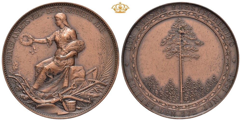 Den Norske Forstforening, Stiftet Den 27de Juni 1881. Throndsen. Bronse 43 mm; 34,21 g. Små flekker og lett renset/minor spots and lightly cleaned