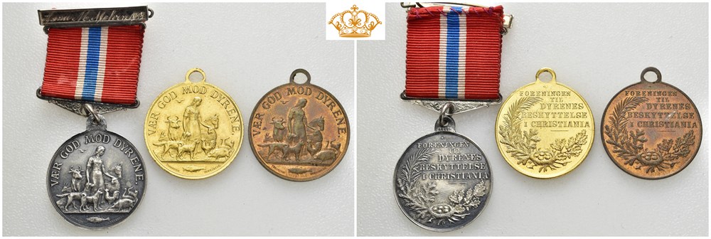 - Foreningen Til Dyrenes Beskyttelse i Christiania, Lot 3 medaljer (14816780)