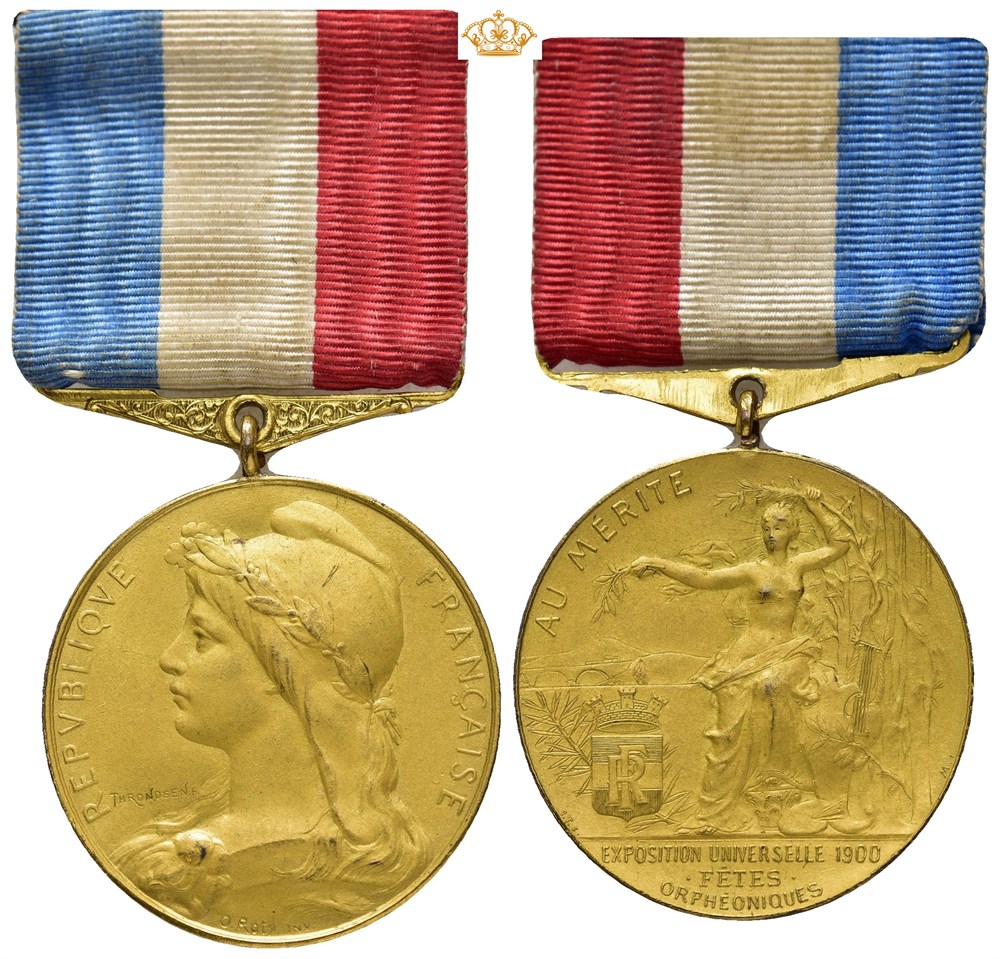 Erindringsmedaljen for Pariserkoret 1900, med bånd. Throndsen. Forgylt bronse 27 mm; 8,59 g
