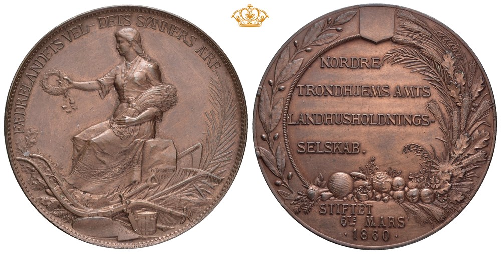 Nordre Trondhjems Amts Landhusholdningsselskab, Stiftet 6te Mars 1860. Throndsen. Bronse 43 mm; 27,12 g