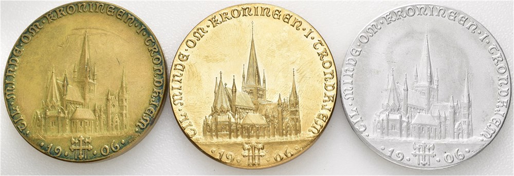 - Kong Haakon VII og Dronning Maud, Kroningen 1906. Lot 3 medaljer (14861404)