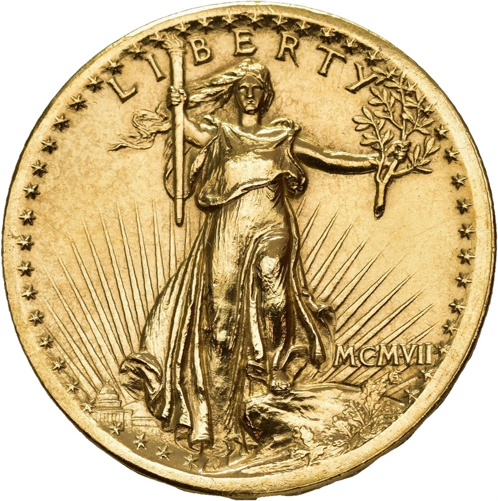 20 dollars 1907 High Relief-Flat Edge