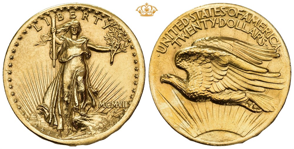 20 dollars MCMVII (1907) High Relief-Flat Edge. Philadelphia mint. Cleaned. Very rare