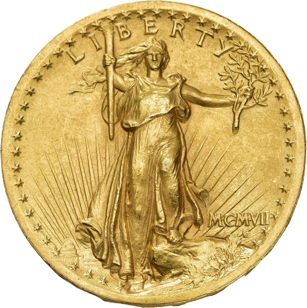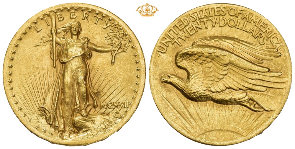 20 dollars MCMVII (1907) High Relief-Wire Edge. Philadelphia mint. Very rare