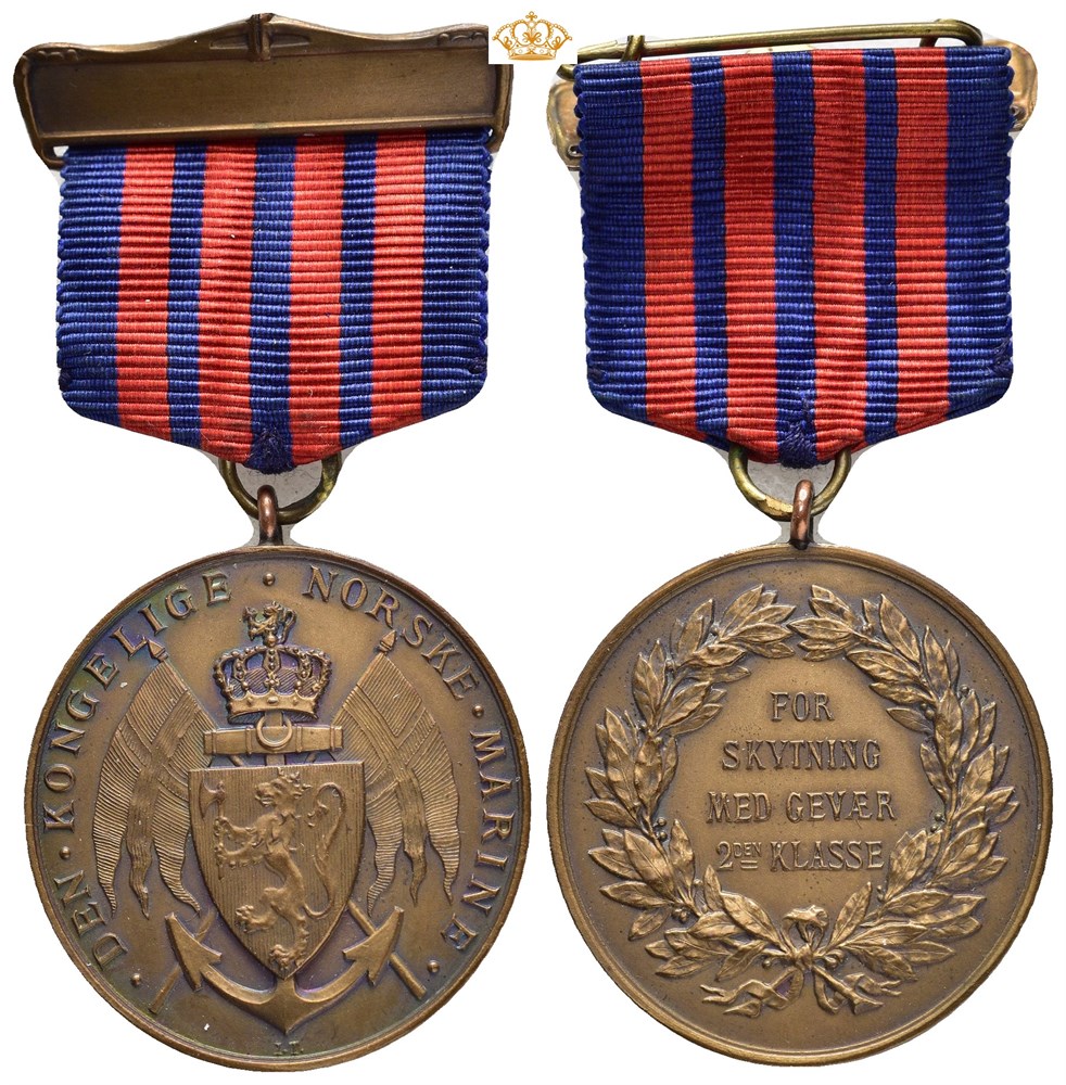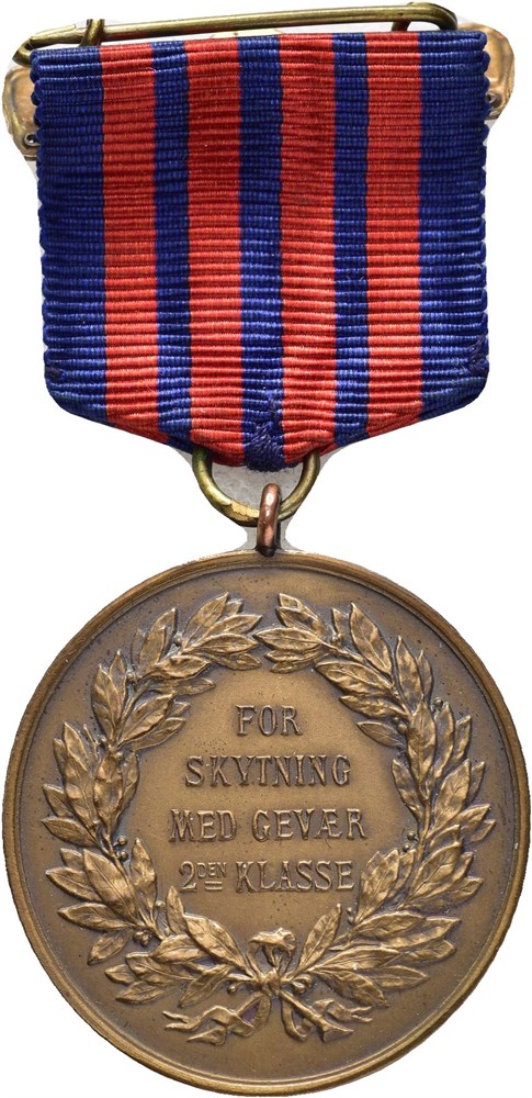 Den Kongelige Norske Marine, For skytning med gevær 2den Klasse, med bånd. Throndsen. Bronse 31 mm; 11,77 g
