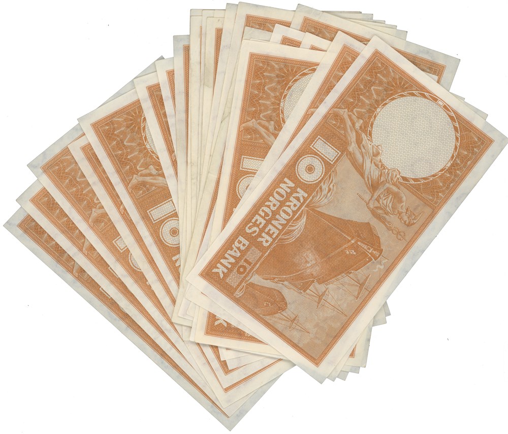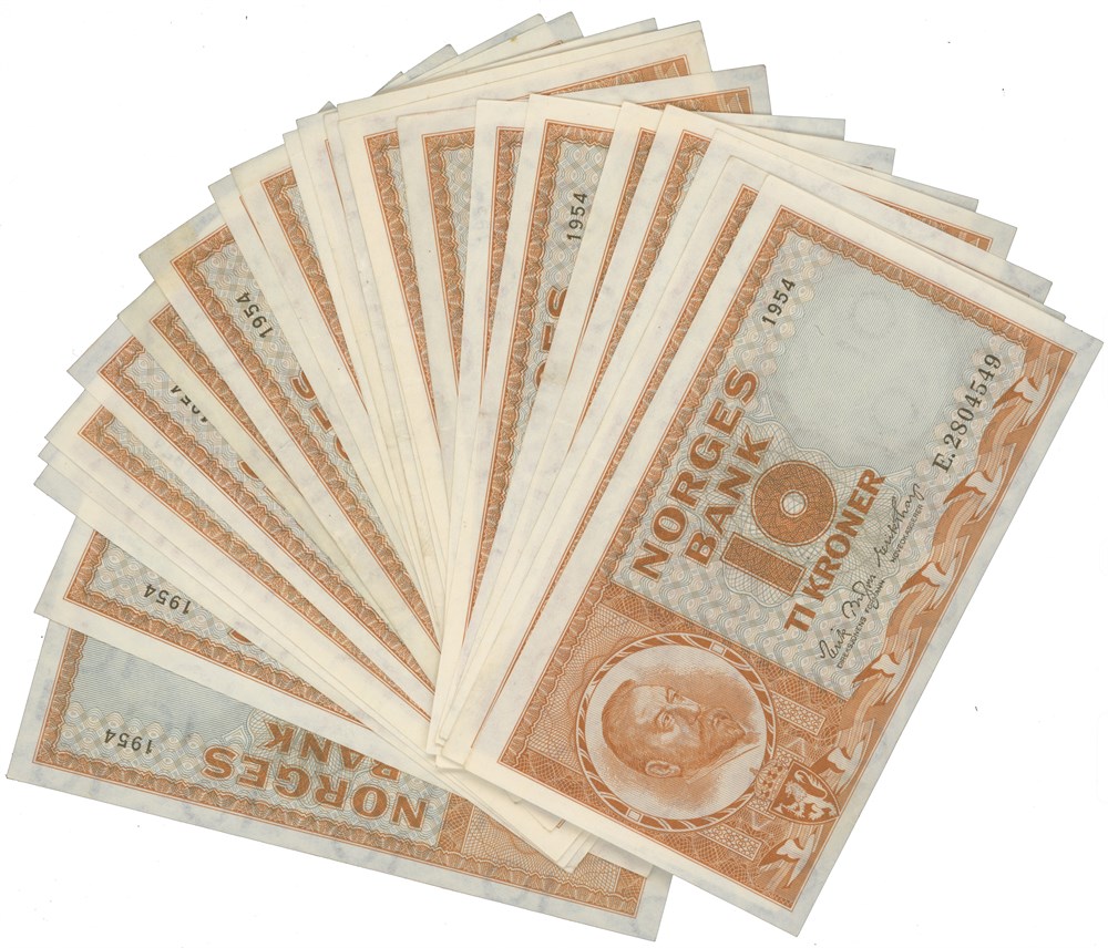 - Lott 25 stk. 10 kroner 1954 E. (14894863)