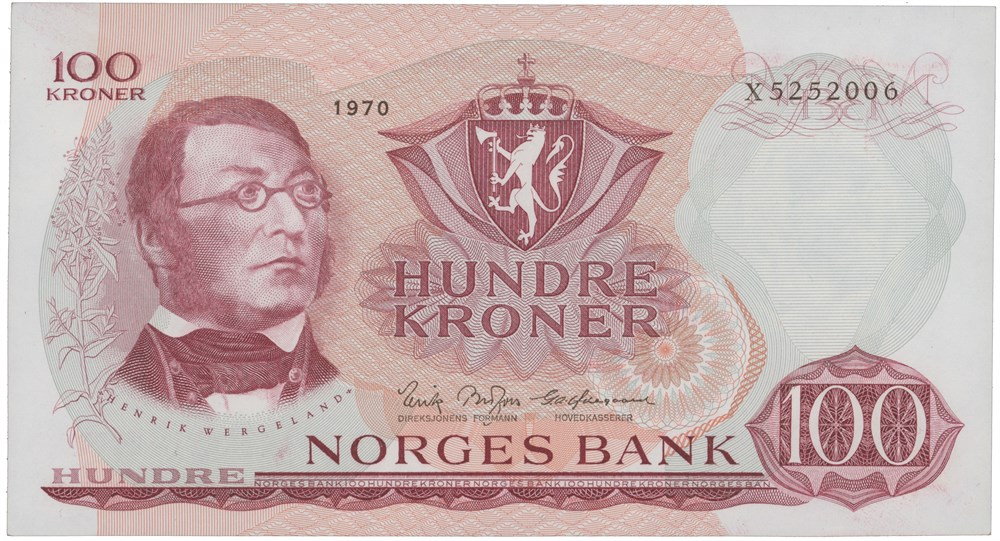 100 kroner 1970. X5252006. Erstatningsseddel.