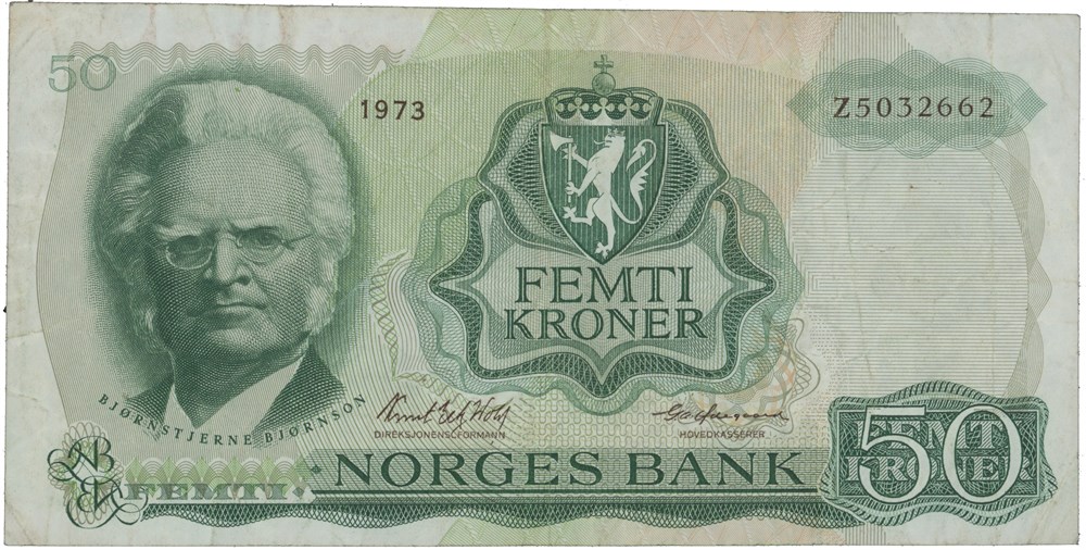 50 kroner 1973. Z5032662. Erstatningsseddel/replacement note (5-million). Meget sjelden/very rare.