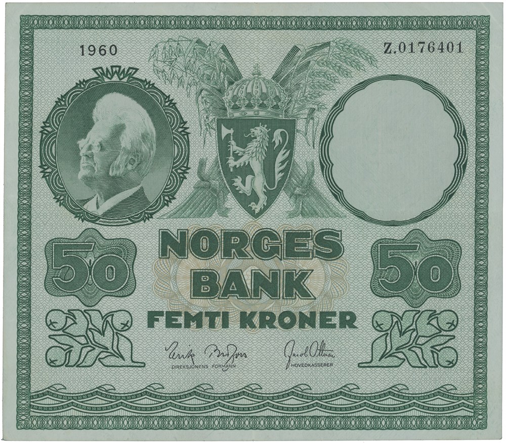 50 kroner 1960. Z.0176401. Erstatningsseddel/replacement note (0-million). Meget sjelden/very rare.