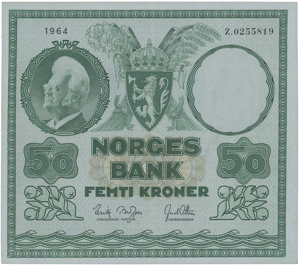 50 kroner 1964. Z.0255819. Erstatningsseddel/replacement note (0-million). Sjelden/rare.