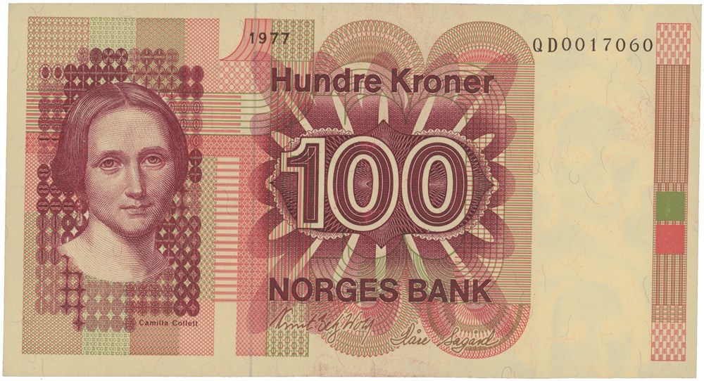 100 kroner 1977. QD0017060. Erstatningsseddel.