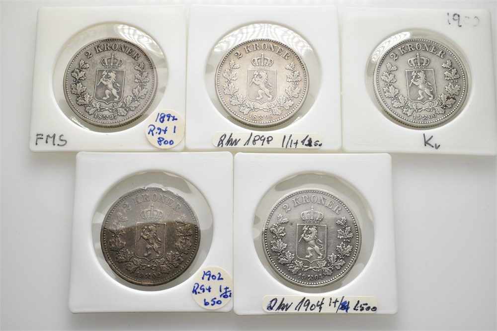 - Lot 5 stk. 2 kroner 1897, 1898, 1900, 1902 og 1904 (15011088)