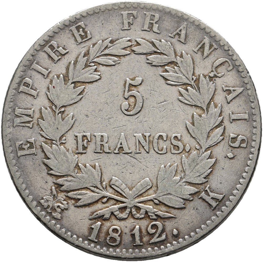 Napoleon I 1808-1814. AR 5 francs 1812 K, Bordeaux Mint, 24,62 grams.
