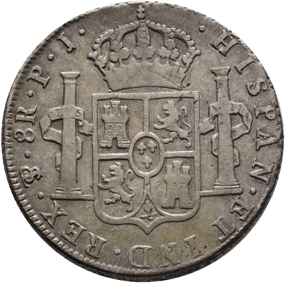 Carlos IV 1788-1808. AR 8 reales 1808 (PTS) PJ, Potosi mint, 26,82 grams.