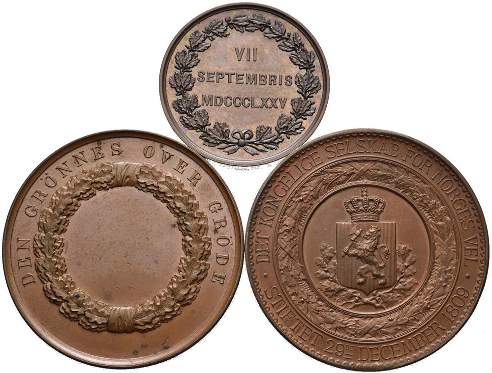 12. The prices in the catalogue are minimum prices and lower bids will not be accepted. A buyer’s premium of 20 % is added to the hammer price of each lot. All coins and banknotes that are or have been legal tender are exempted from VAT in Norway. 25 % VAT is added to the buyer’s premium on medals when picked up in Norway. On medals sold for export, the buyer’s premium is 20 %. Lots that are subjected to VAT is marked with * by the end of the lot number. Domestic shipments are sent with registered mail with tracking at a minimum charge of NOK 200, -. All international shipments will be sent with DHL or Fedex at a minimum price of NOK 690, -. Successful bidders may also to pick up their won lots at our offices in Oslo and Haugesund. Oslo Myntgalleri is not responsible for shipments that are lost due to wrong or insufficient address information provided by the buyer.