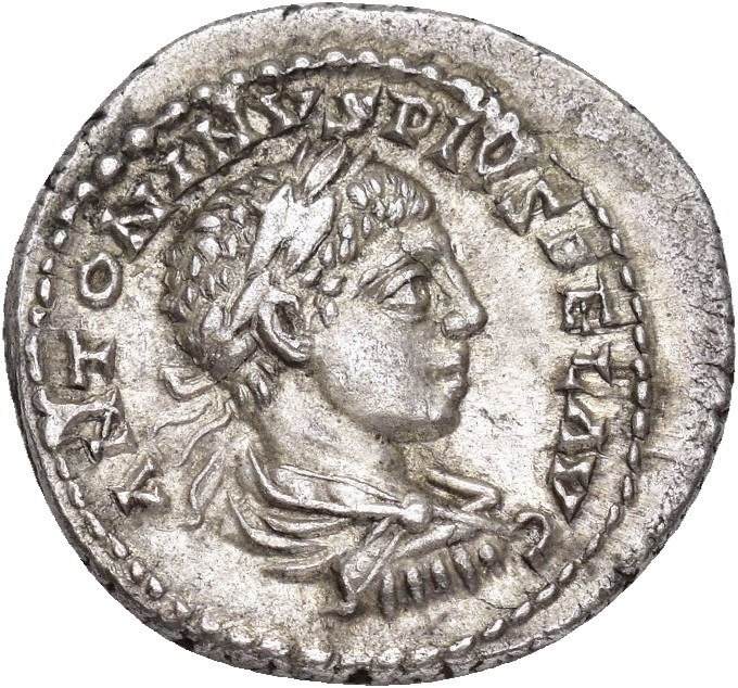 Elagabalus 218-222 AD. AR Denarius (20 mm; 3.54 g). Antioch mint?, struck 219-220 AD. Obverse: ANTONINVS PIVS FEL AVG, Laureate, draped and cuirassed bust right. Reverse: TEMPORVM FEL, Felicitas standing facing, head left, holding patera in right hand and long caduceus in left. Some underlying luster. Lightly toned.