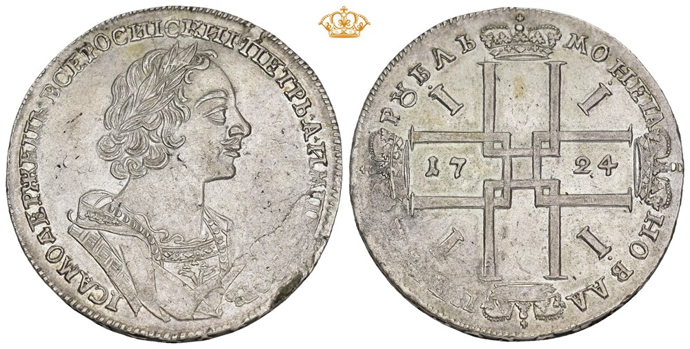 Rouble 1724, Red mint (Moscow). 28.53 g. Edge flaw in planchet.