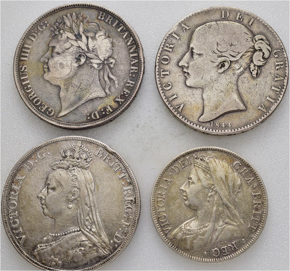 - Lot. Crown 1821, crown 1844, crown 1892 & 1/2 crown 1896 (15154418)