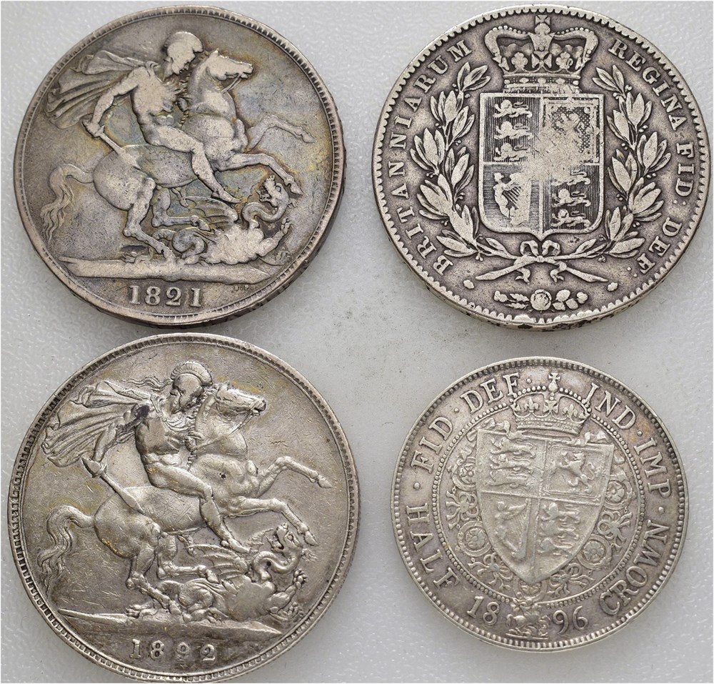 Lot. Crown 1821, crown 1844, crown 1892 & 1/2 crown 1896