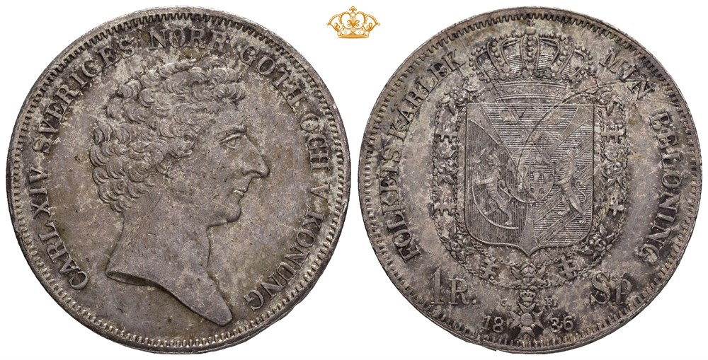 Riksdaler 1836, 33,71 g. Blankettfeil / planchet flaw reverse.