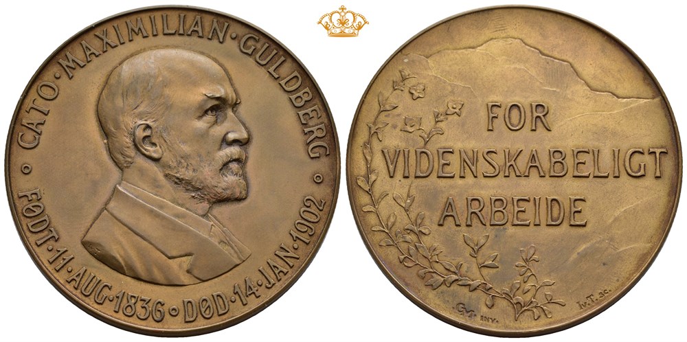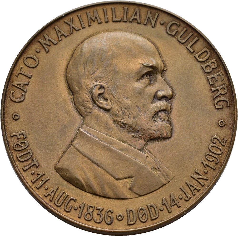 Cato Maximilian Guldberg 1836-1902. Throndsen. Bronse 60 mm; 89,17 g. I originalt etui