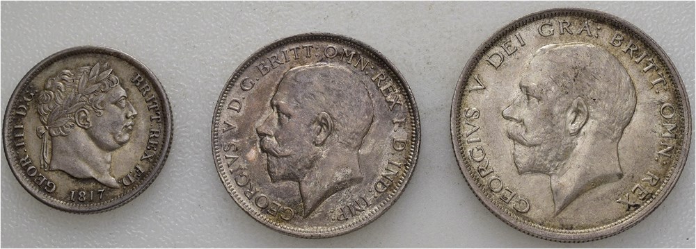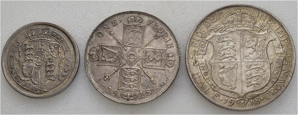 Lott. Shilling 1817, florin 1918 & 1/2 crown 1918