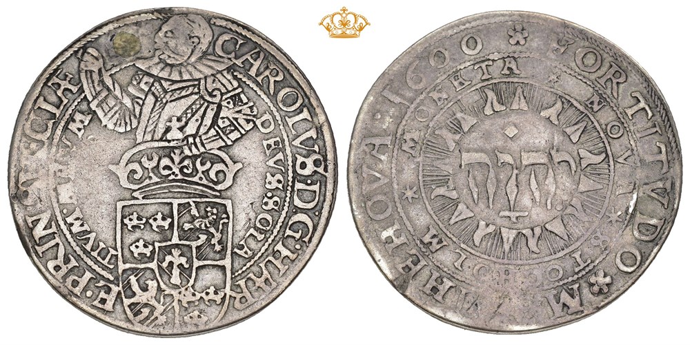 1/4 daler 1600, Stockholm. 6,91 g. Plugget.
