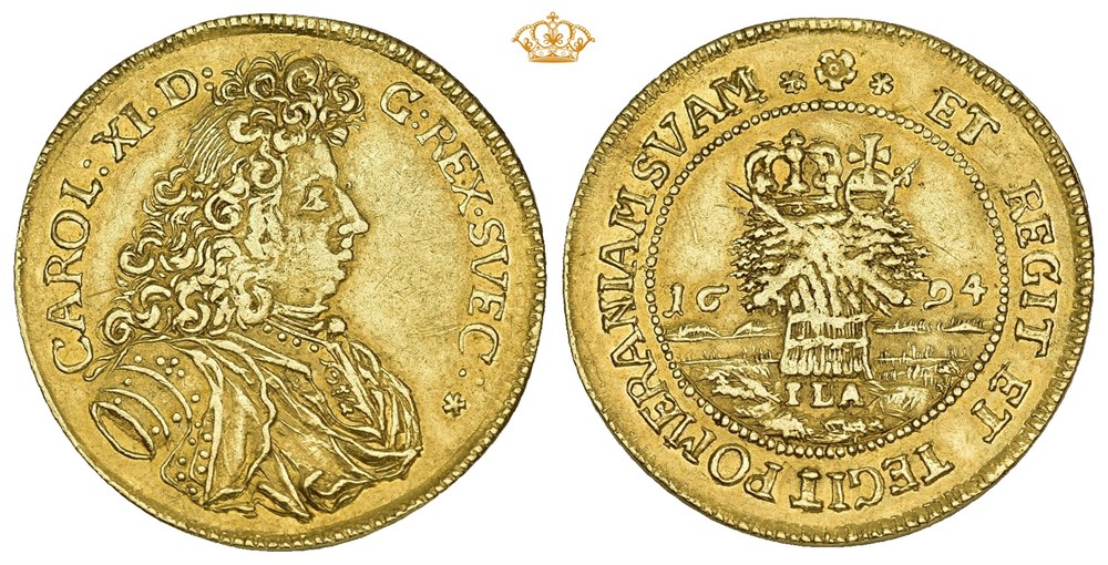 2 dukat 1694, Stettin. 6,9 g. Svært sjelden.