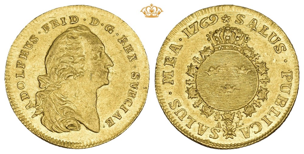 Dukat 1769, Stockholm. 3,49 g. Små hakk. RR.